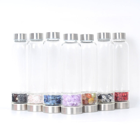Borosilicate garrafa de água natural, atacado borosilicate vidro de cura pedra preciosa cristal infundido